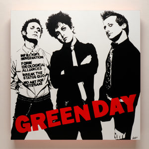Green Day–inspired energy: bold contrast, sharp lines, and anthem-ready attitude