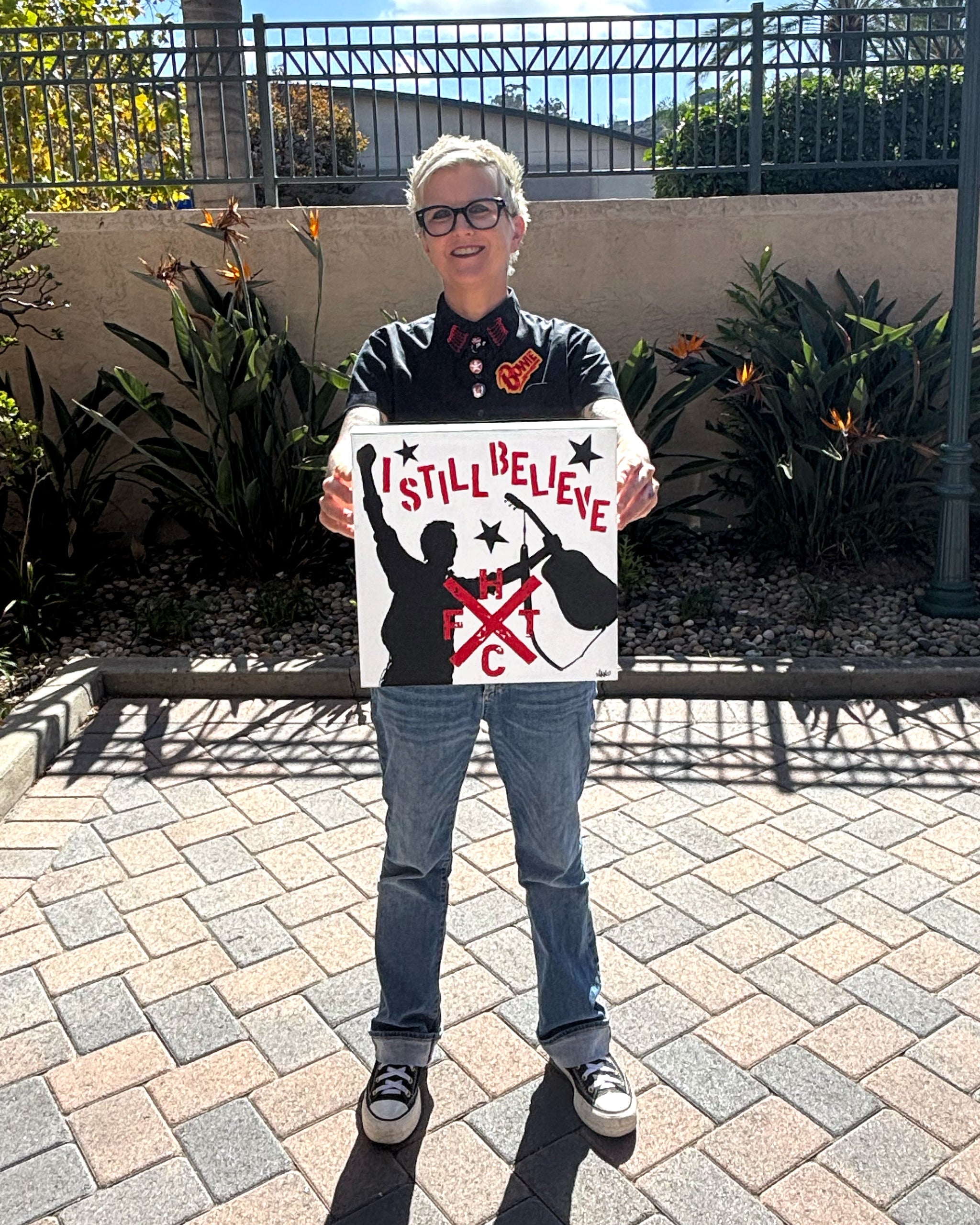 This RAD “I Still Believe” original is Nan’s shout-along salute to Frank Turner—all heart, grit, and sing-together spirit in her punchy pop-meets-punk style. Painted on a 1.5" cradled Gessobord panel, it’s sleek, sturdy, and ready to hang. ❤️