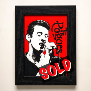 This RAD “Shane” original is Nan’s gritty salute to The Pogues—mic-in-hand stance, weathered croon, and bold Pogues lettering on a deep red field. Hand-painted on 5"×7" gesso board and set in a clean black frame, it arrives ready to hang. ❤️