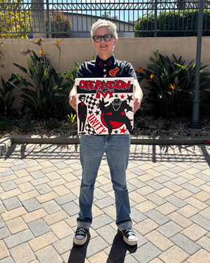 This RAD “Unity” original is Nan’s high-voltage nod to Operation Ivy—ska-punk grit, star pops, and DIY urgency in crisp black, white, and red. Painted on a 1.5" cradled Gessobord panel, it’s sleek, sturdy, and ready to hang. ❤️