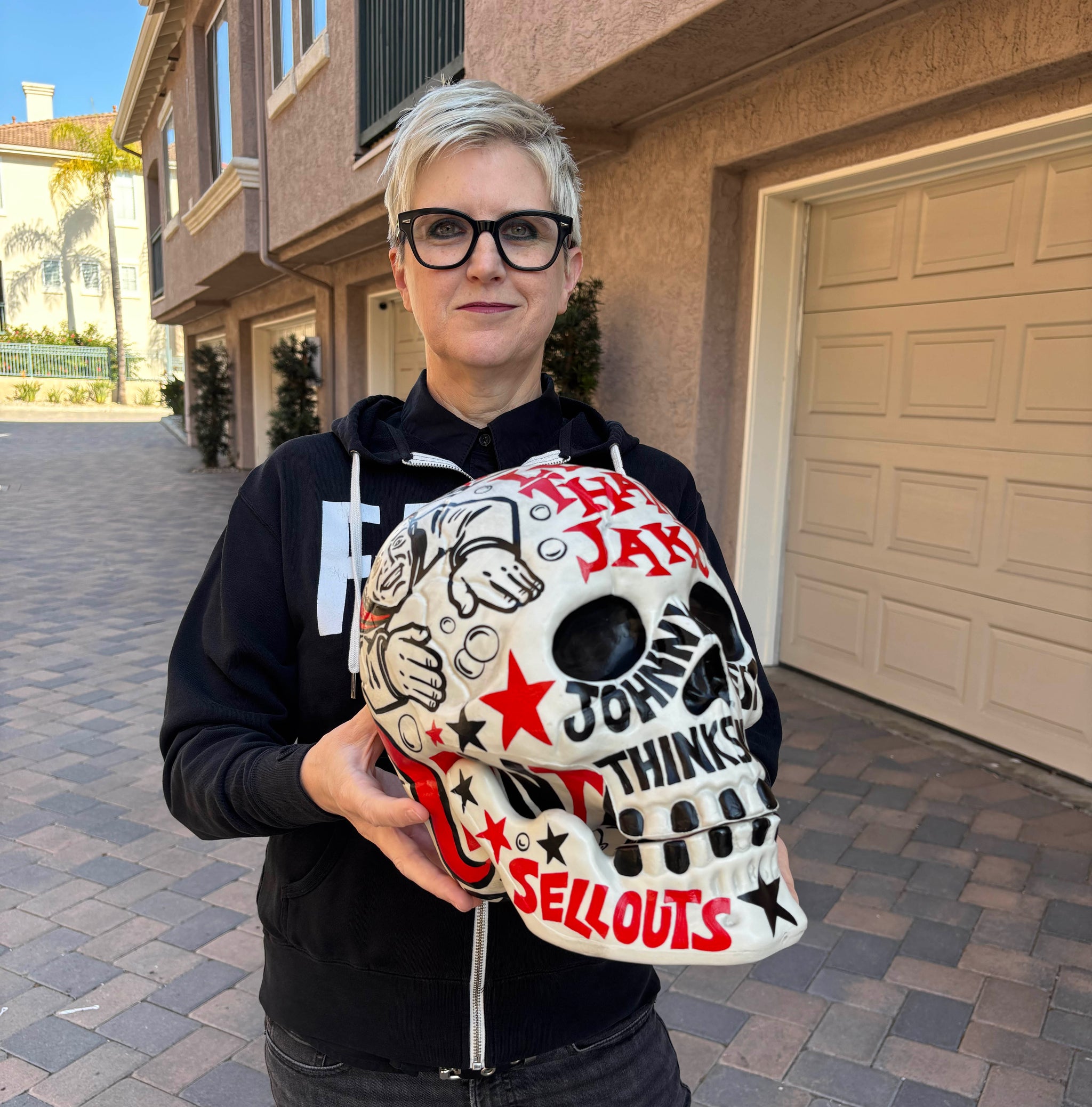 You are purchasing ONE Nan-painted custom mega skull commission spot. Please note that Nan will NOT paint exact duplicates of previous skulls, but she WILL paint the same bands/movies/etc as she has previously completed if you’d like - They will just not be exactly the same.