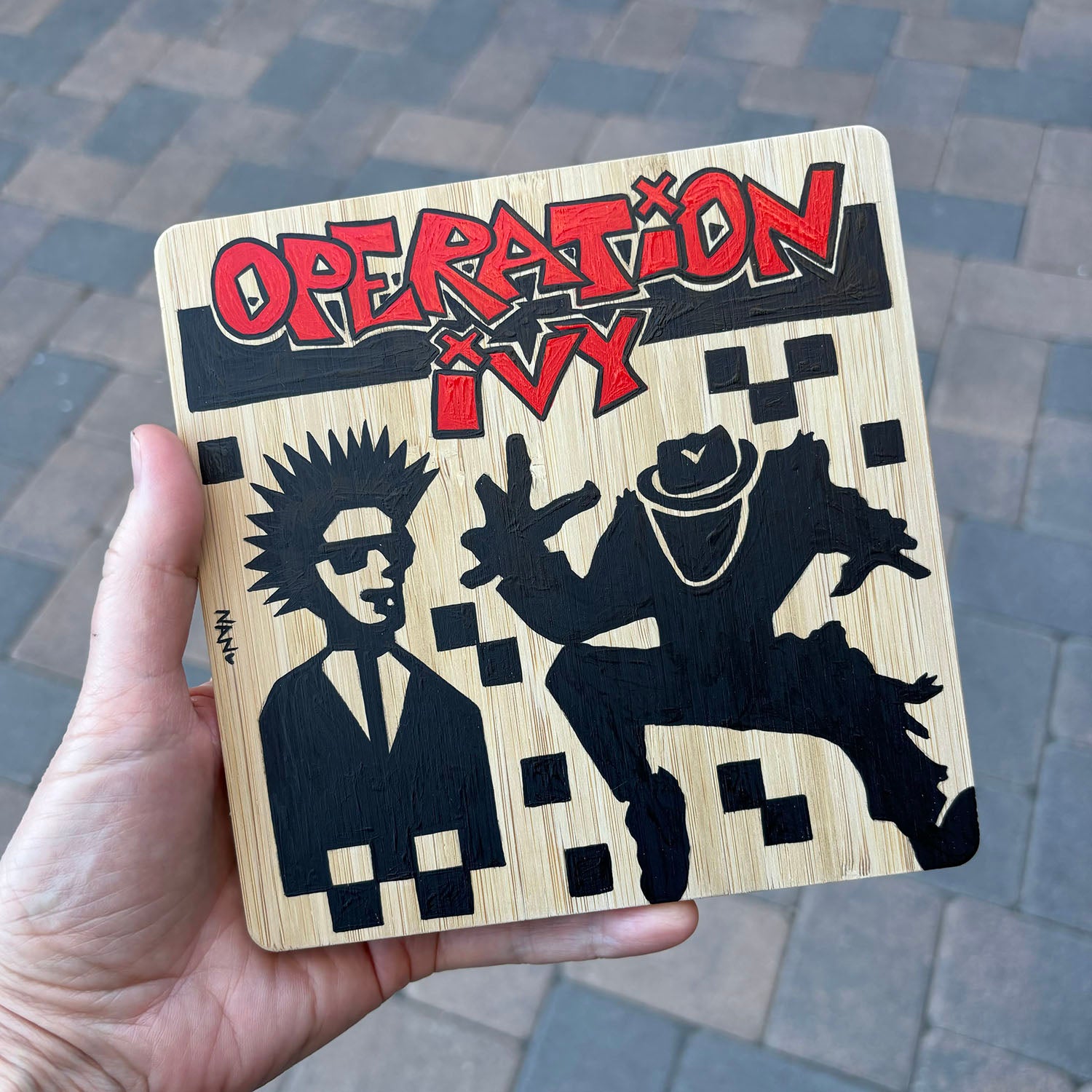 This RAD Op Ivy piece was hand-painted by Nan. Painted with acrylics, this original painting measures 6”x6” on bamboo board.