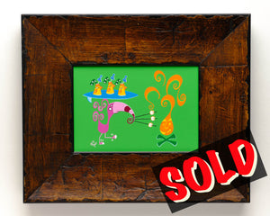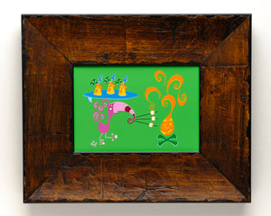 This RAD piece is from Nan’s previously unreleased Tiki Birds collection, hand-painted in Nan’s playful and bold pop style. Painted with acrylics, this original painting measures 5"x7" on gesso board. Piece is framed in an awesome wood frame and ready to hang ❤️